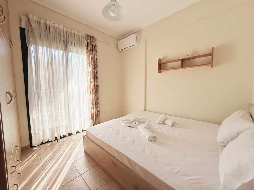 Αυτό το διαμέρισμα βρίσκεται στο Πολύχρονο Χαλκιδικής, μόνο 2’από τη θάλασσα και τα κρυστάλλινα νερά. Ανεβαίνοντας στον πρώτο όροφο θα συναντήσετε το διαμέρισμα που διαθέτει 1 υπνοδωμάτιο με διπλό κρεβάτι, 1 μπάνιο με ντουζιέρα και μια ευρύχωρη και πλήρως εξοπλισμένη σαλοκουζίνα. Ο καναπές στο σαλόνι μετατρέπεται σε διπλό κρεβάτι, μαζί με τον μονό, μπορούν να εξυπηρετήσουν 3 ακόμη άτομα.