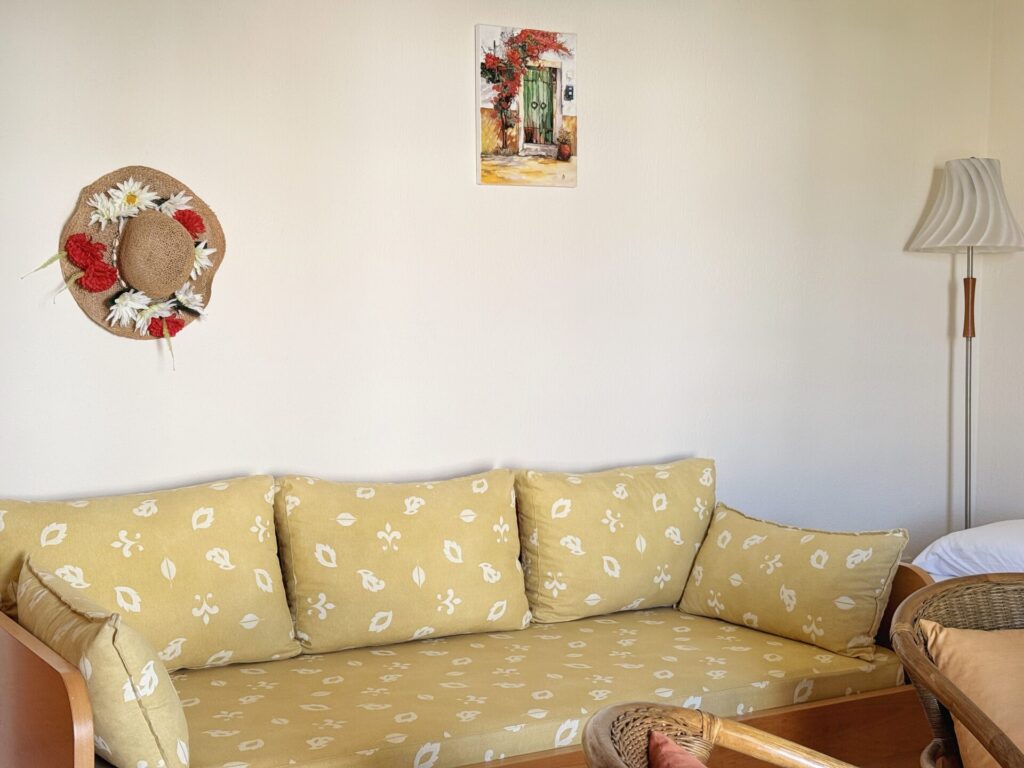 The nearest beach is just 2’ away, offering easy access to clear blue waters and sandy beaches. The apartment’s location combines tranquility and privacy with direct access to restaurants, shops and points of interest in the area.