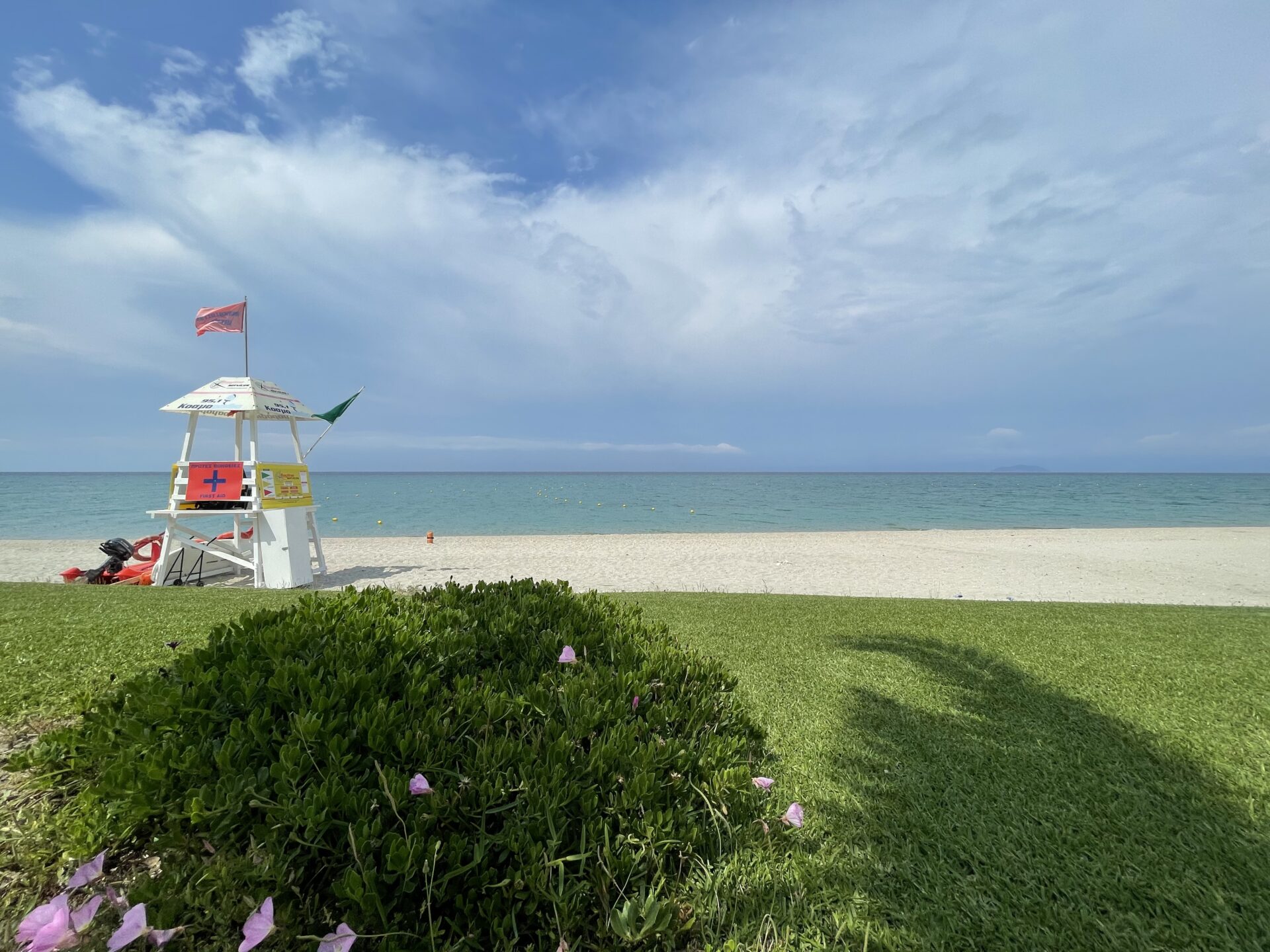 The nearest beach is just 3’ away by foot, offering easy access to clear blue waters and sandy beaches. The house’s location combines tranquility and privacy with direct access to restaurants, shops and points of interest in the area.