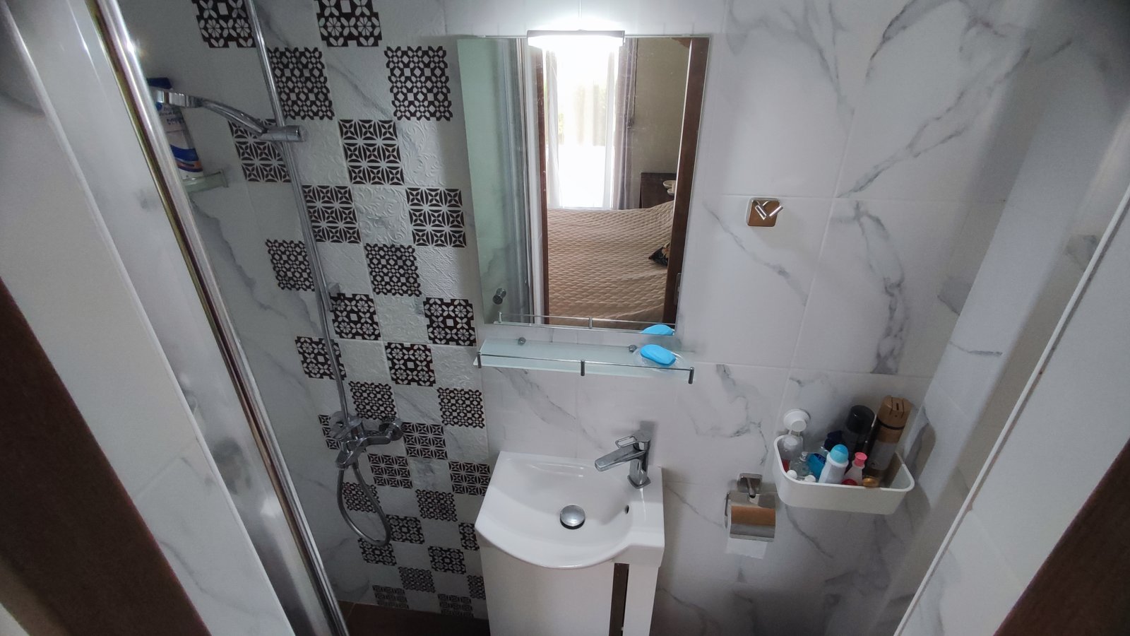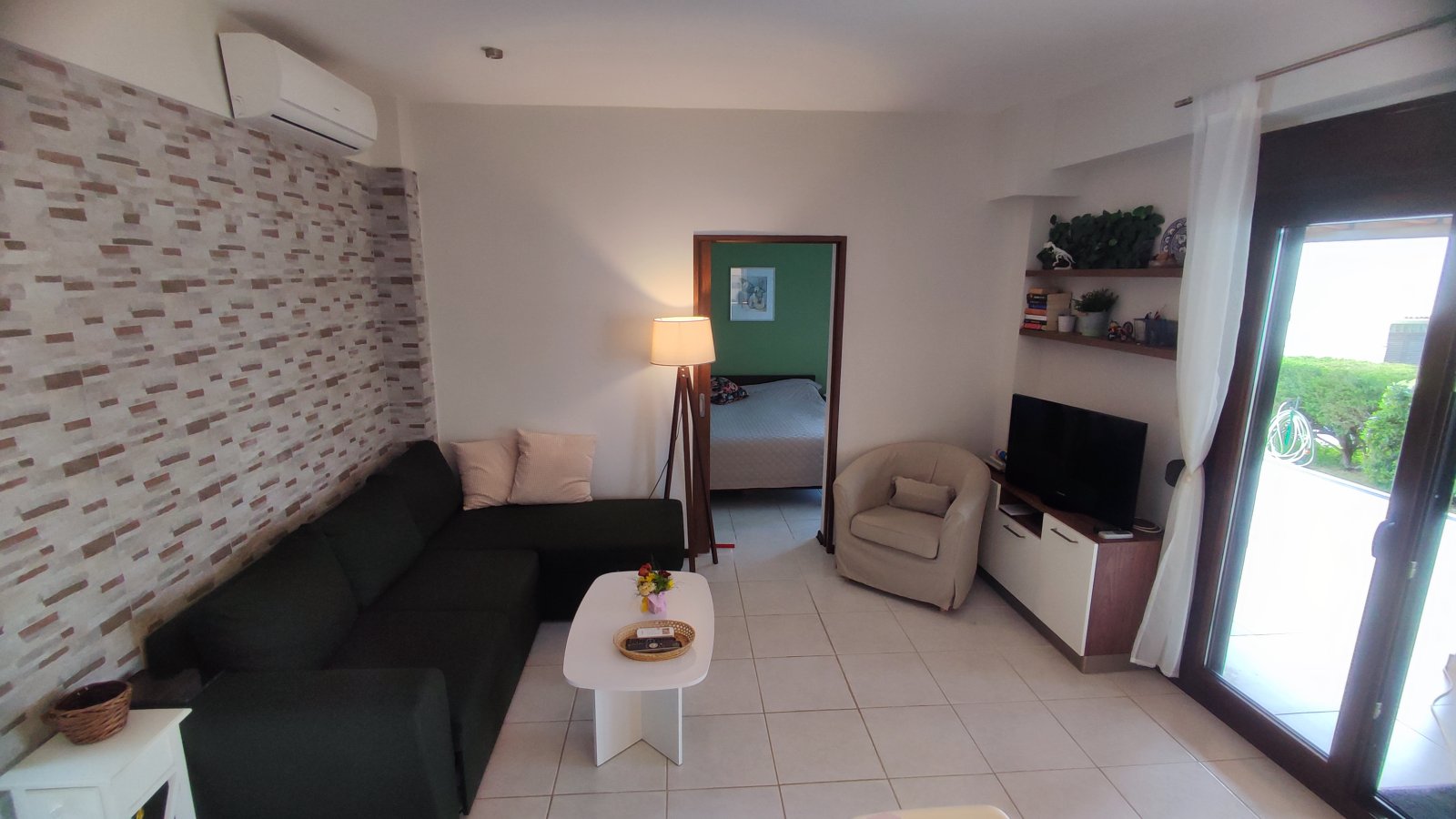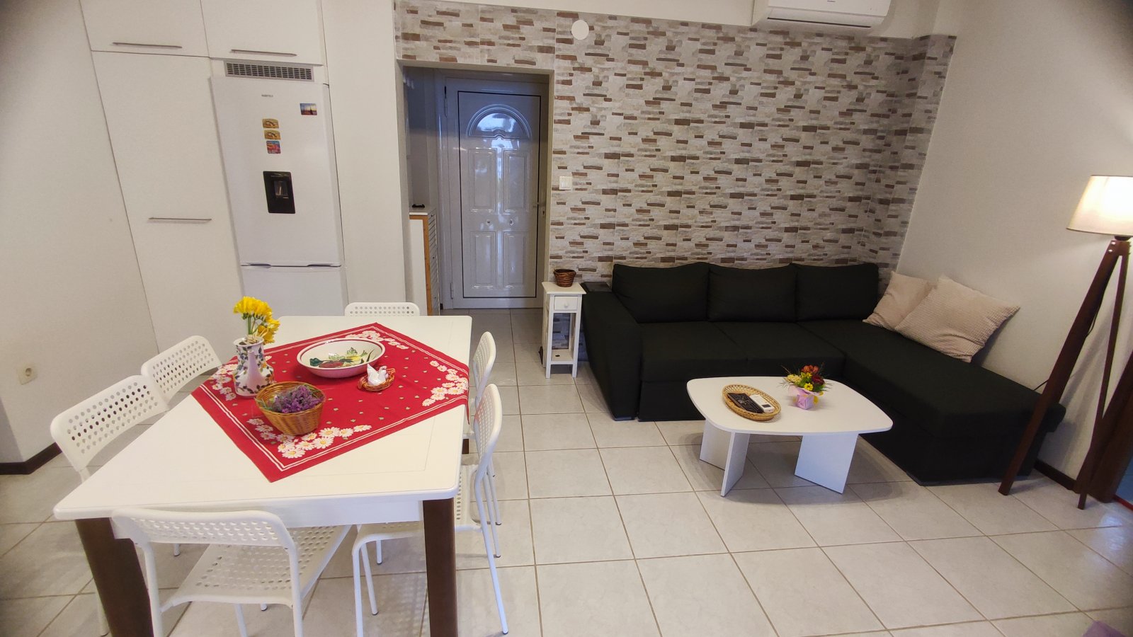 This house is located in Pefkochori, Halkidiki, just 3’ away from the sea and its crystal clear waters. It is a wonderful ground floor property. There is a double bedroom with ensuite bathroom, a second double bedroom, 1 bathroom with a shower and a fully equipped living room and kitchen. In the living room you will find a double sofa bed.