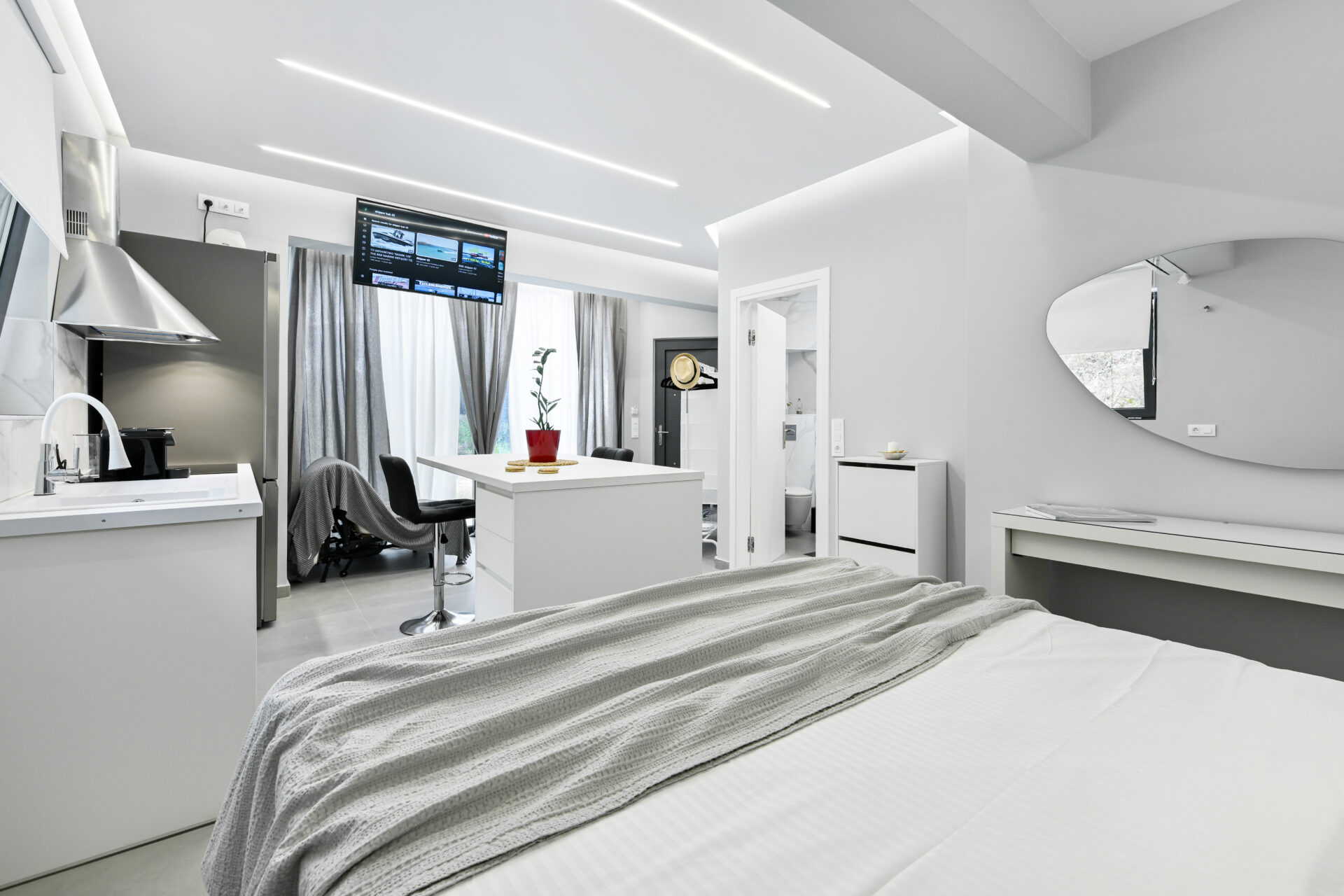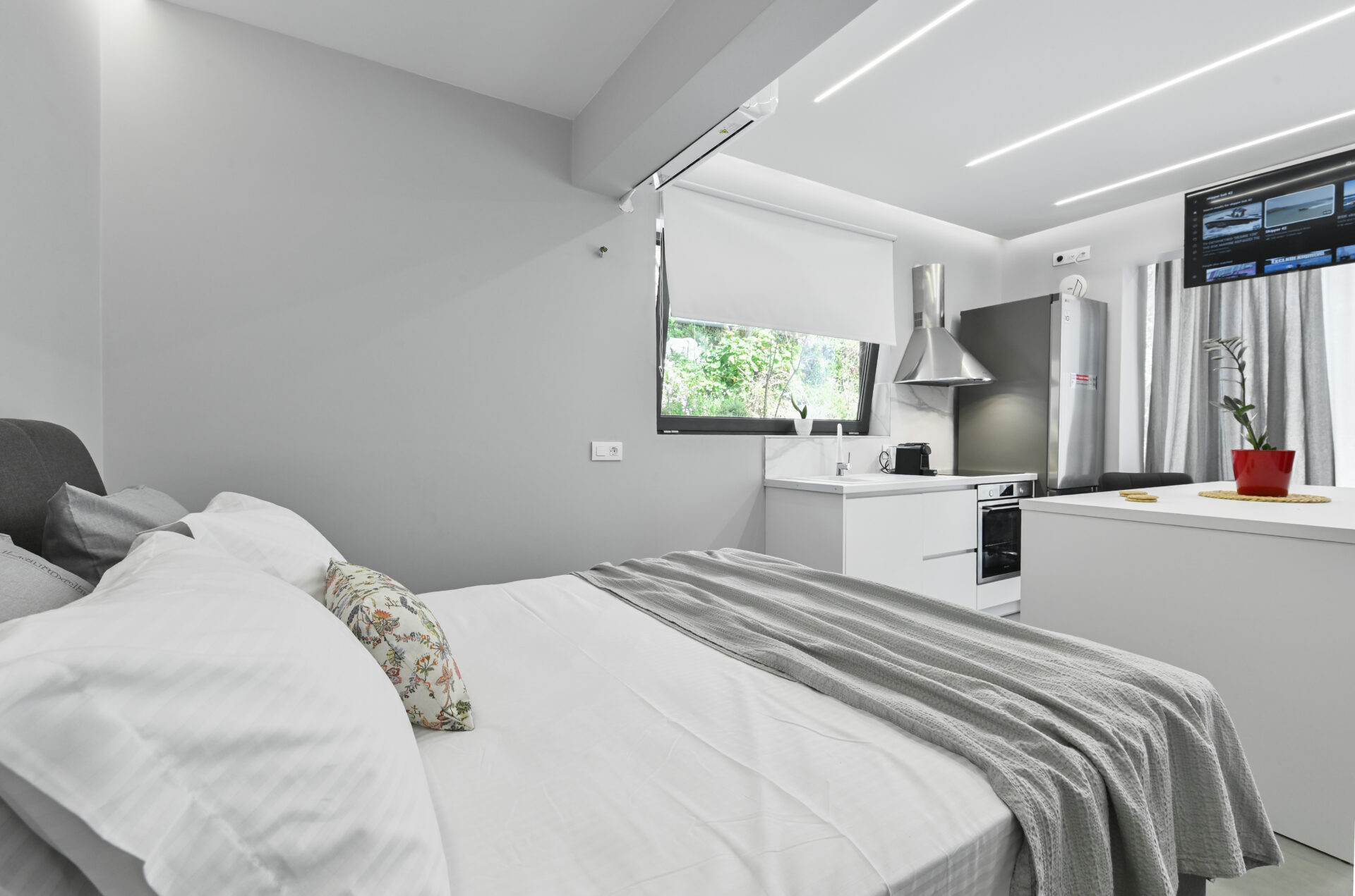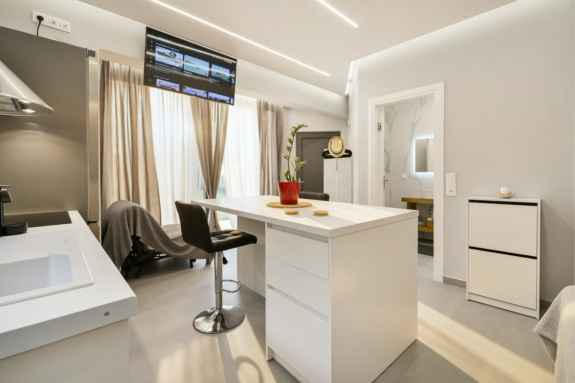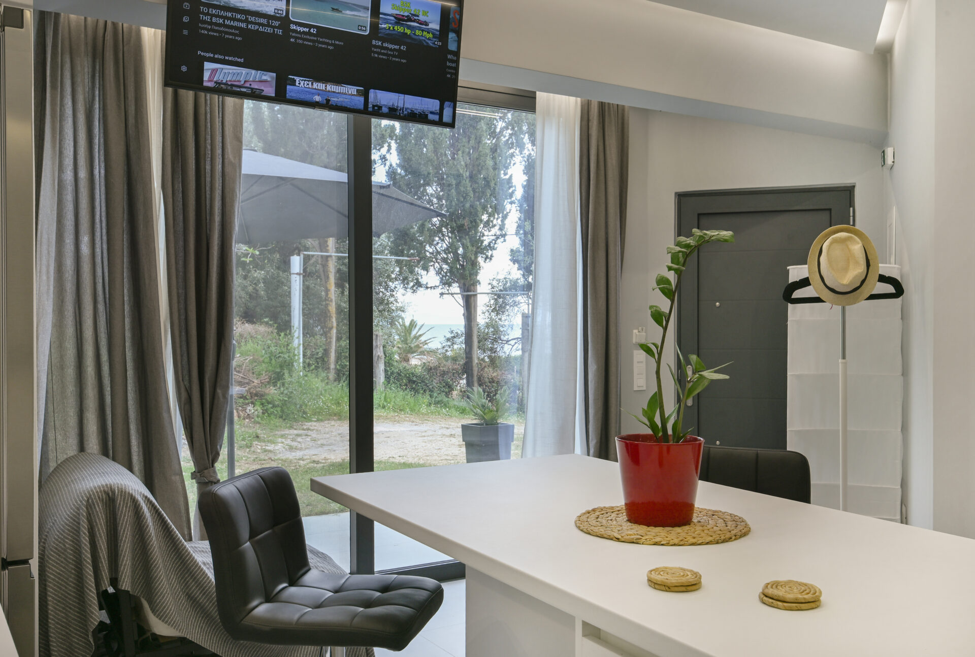 Welcome to our luxurious studio, a peaceful retreat with modern design and carefully curated amenities on Lygia Beach in Preveza, ideal for unforgettable summer holidays for families or groups of adults. The studio is located on the ground floor of a building that also houses 2 other apartments and is just 50m from the sea and the crystal-clear waters.