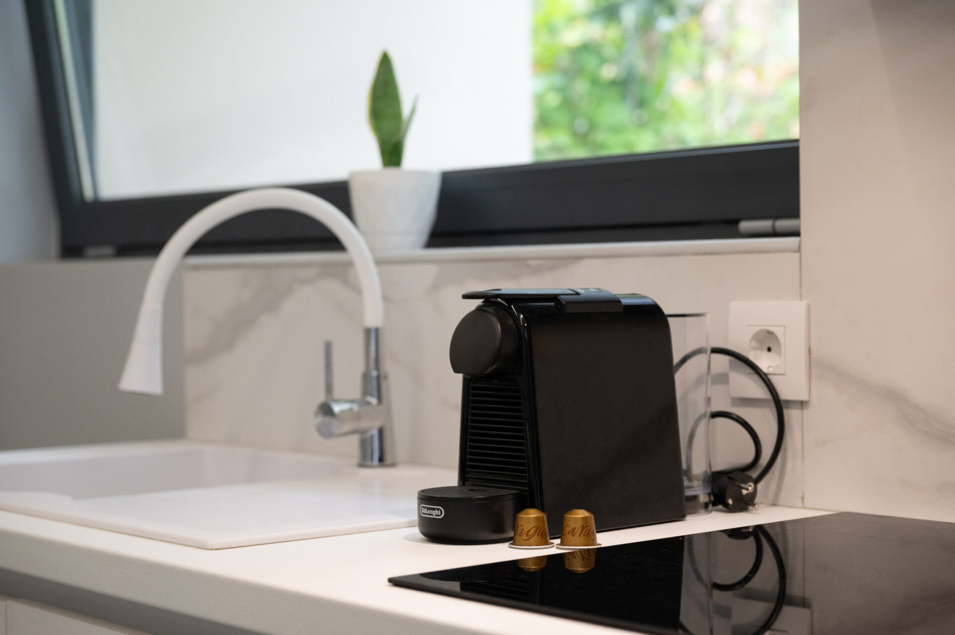 The location of the studio combines tranquility and privacy with easy access to restaurants, shops, and points of interest in the area, as it is just 50m from the nearest beach and 20’ by car from the village center.