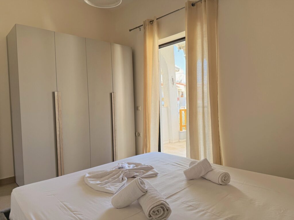 The nearest beach is just 2’ away, offering easy access to clear blue waters and sandy beaches. The apartment’s location combines tranquility and privacy with direct access to restaurants, shops and points of interest in the area.