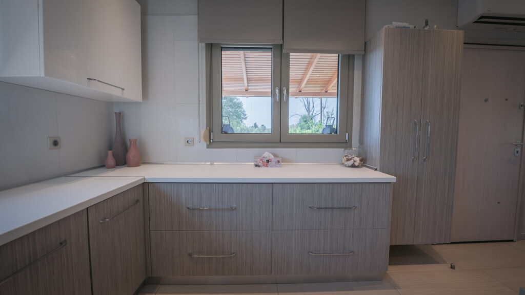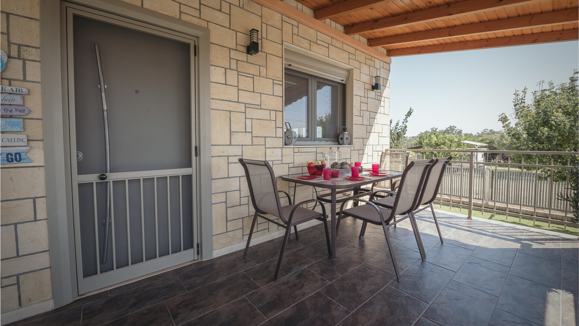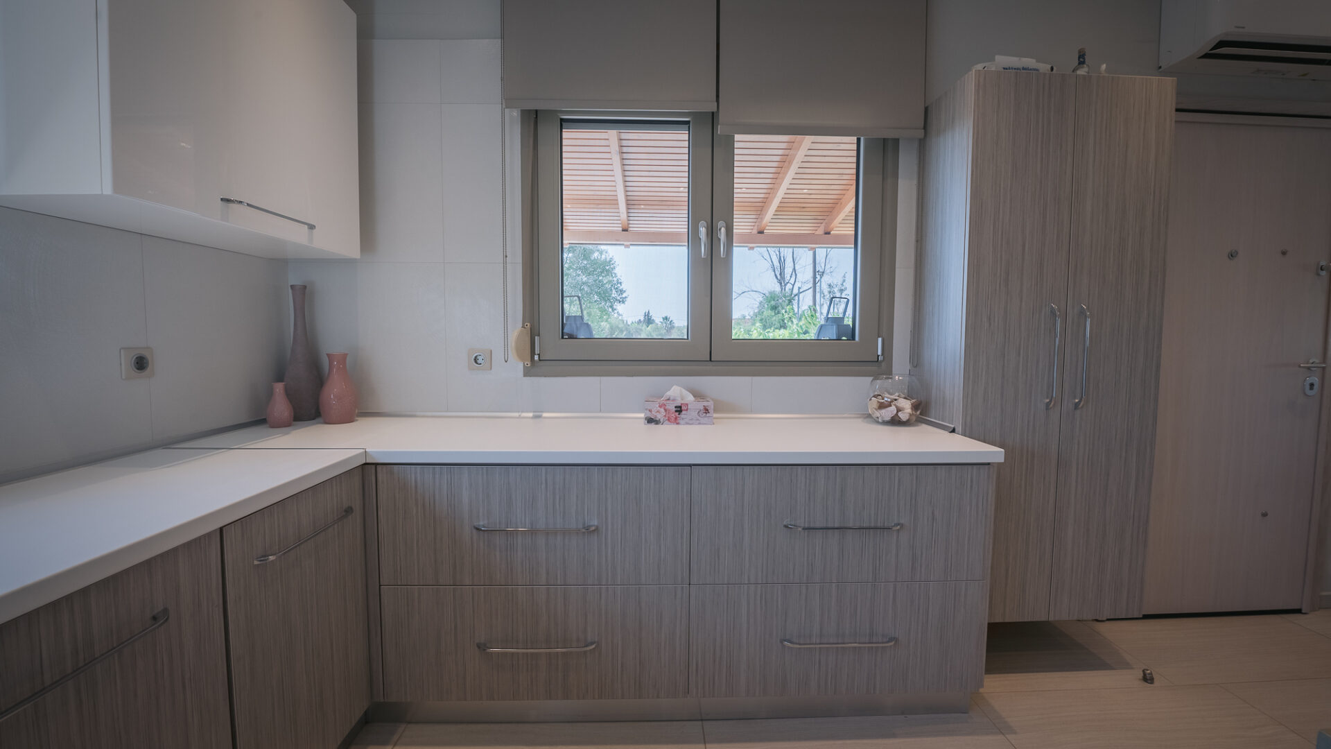 This is a spacious residence of 100 sq.m. which can comfortably accommodate 8–11 people. On the ground floor of the residence there is an open-plan kitchen-living room which also leads to the large veranda. The fully equipped kitchen with dining area has everything you need to prepare meals, from breakfast to dinner, in a welcoming space that brings the family together. In the area extends a spacious and bright living room with a large corner sofa that converts into a comfortable bed, ideal for hosting additional guests. Additionally, on the same floor there are 3 bedrooms. In the first bedroom there is a double bed, while there are also 2 more bedrooms, each equipped with 2 single beds. Finally, there is also a large modern bathroom with a shower.