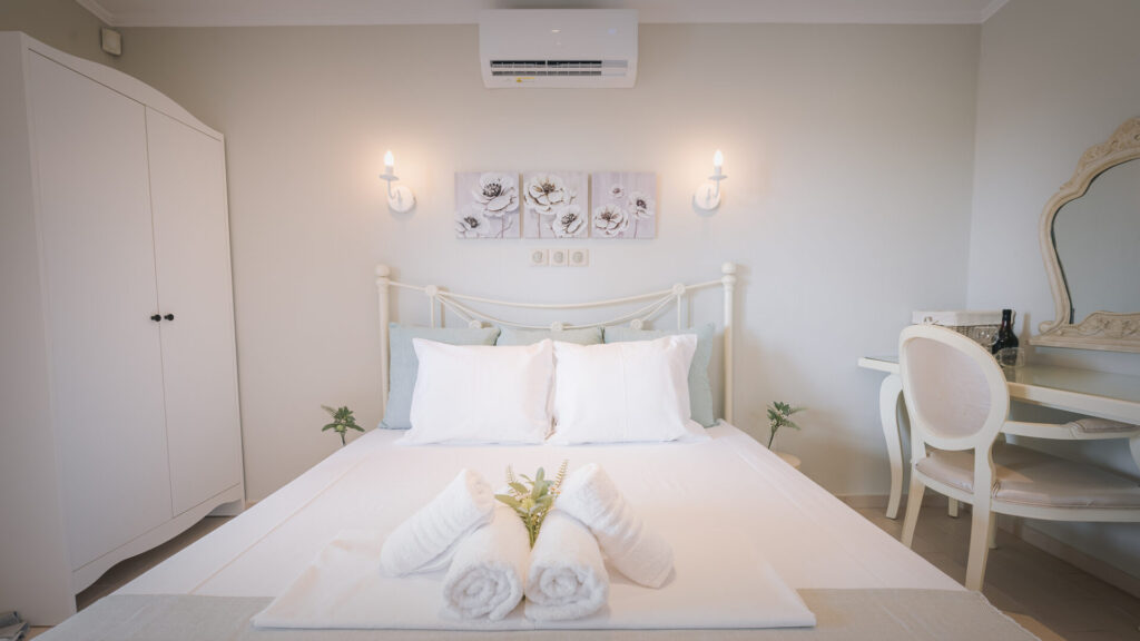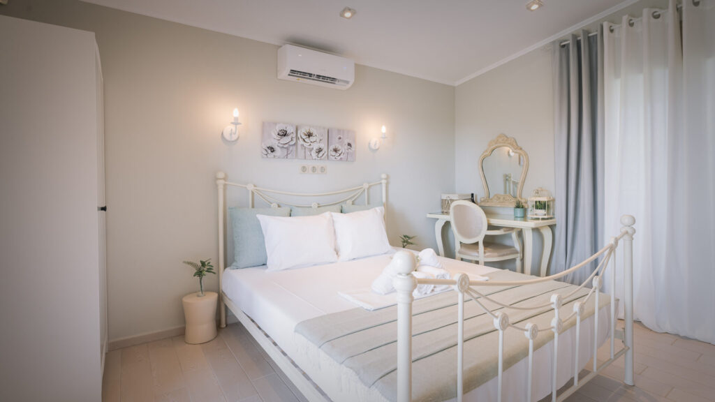 - Υπάρχει A/C σε κάθε δωμάτιο και στη σαλοκουζίνα για να εξυπηρετεί τις ζεστές μέρες του καλοκαιριού.