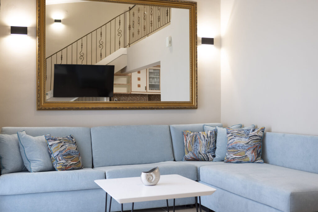 The location of the residence combines tranquility and privacy with easy access to restaurants, shops, and points of interest in the area, as it is 400m from the nearest beach and only 5’ from the center of the village.