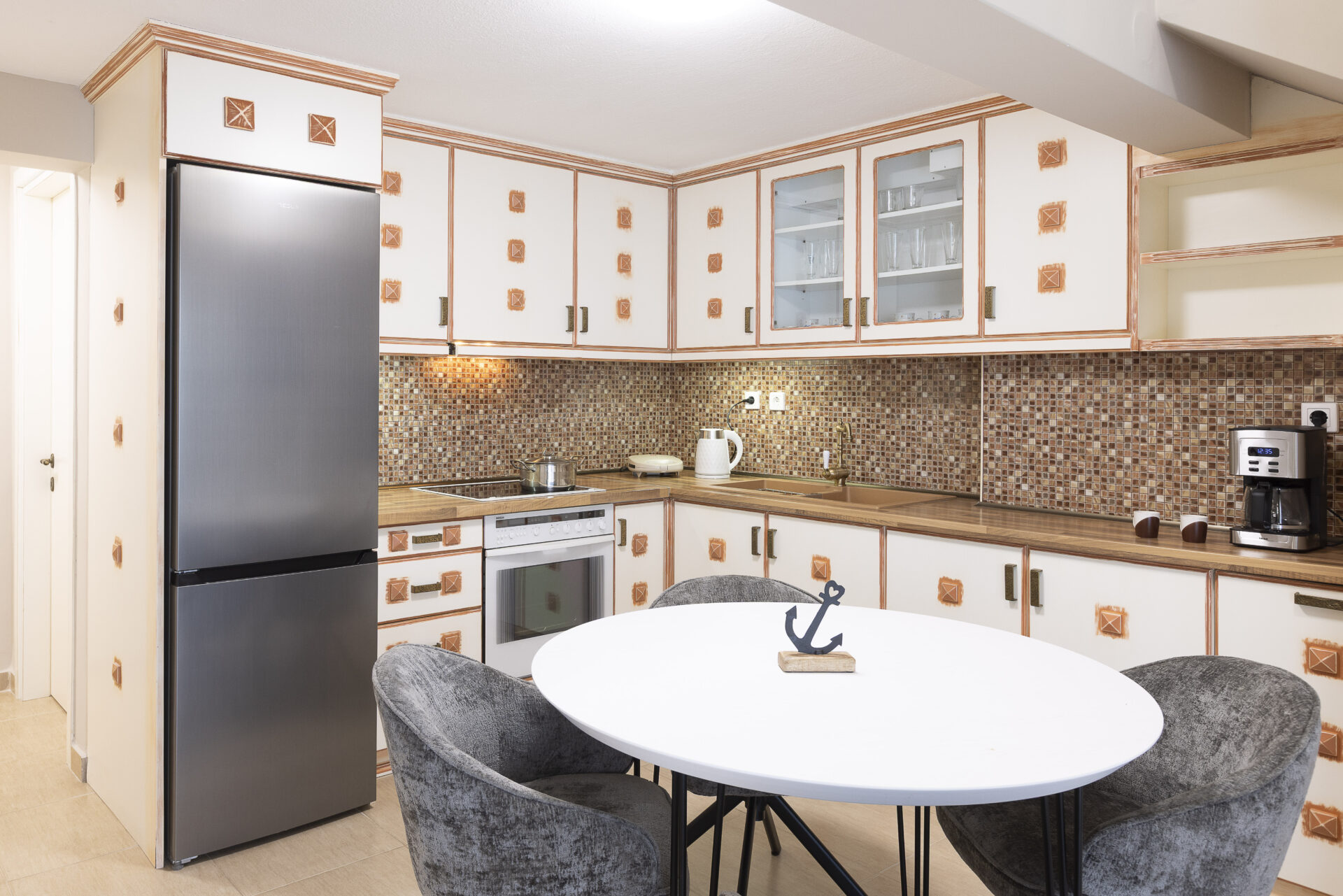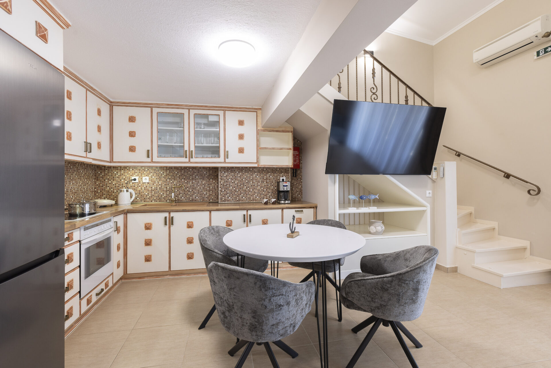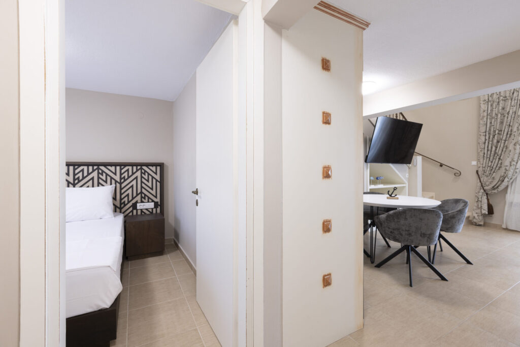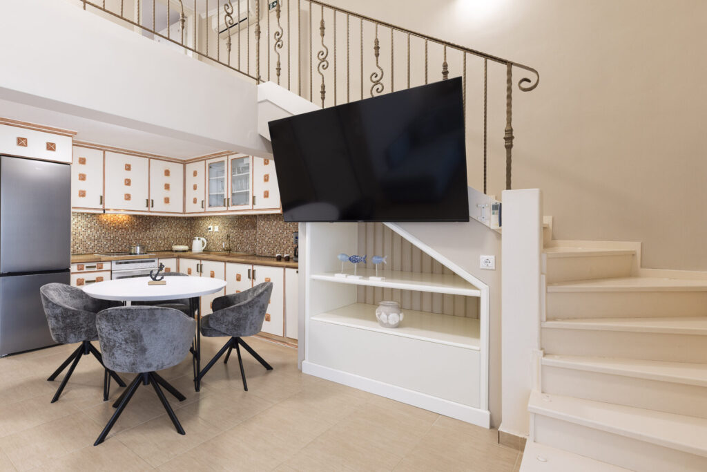 The maisonette features a spacious balcony with a large dining table and a sea view where you can relax and enjoy unique moments with friends and family.