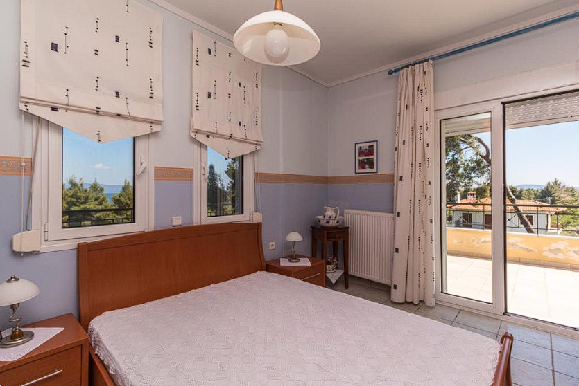 Στον επάνω όροφο υπάρχουν δύο υπνοδωμάτια με διπλά κρεβάτια, όλα εξοπλισμένα με κλιματισμό για απόλυτη άνεση.