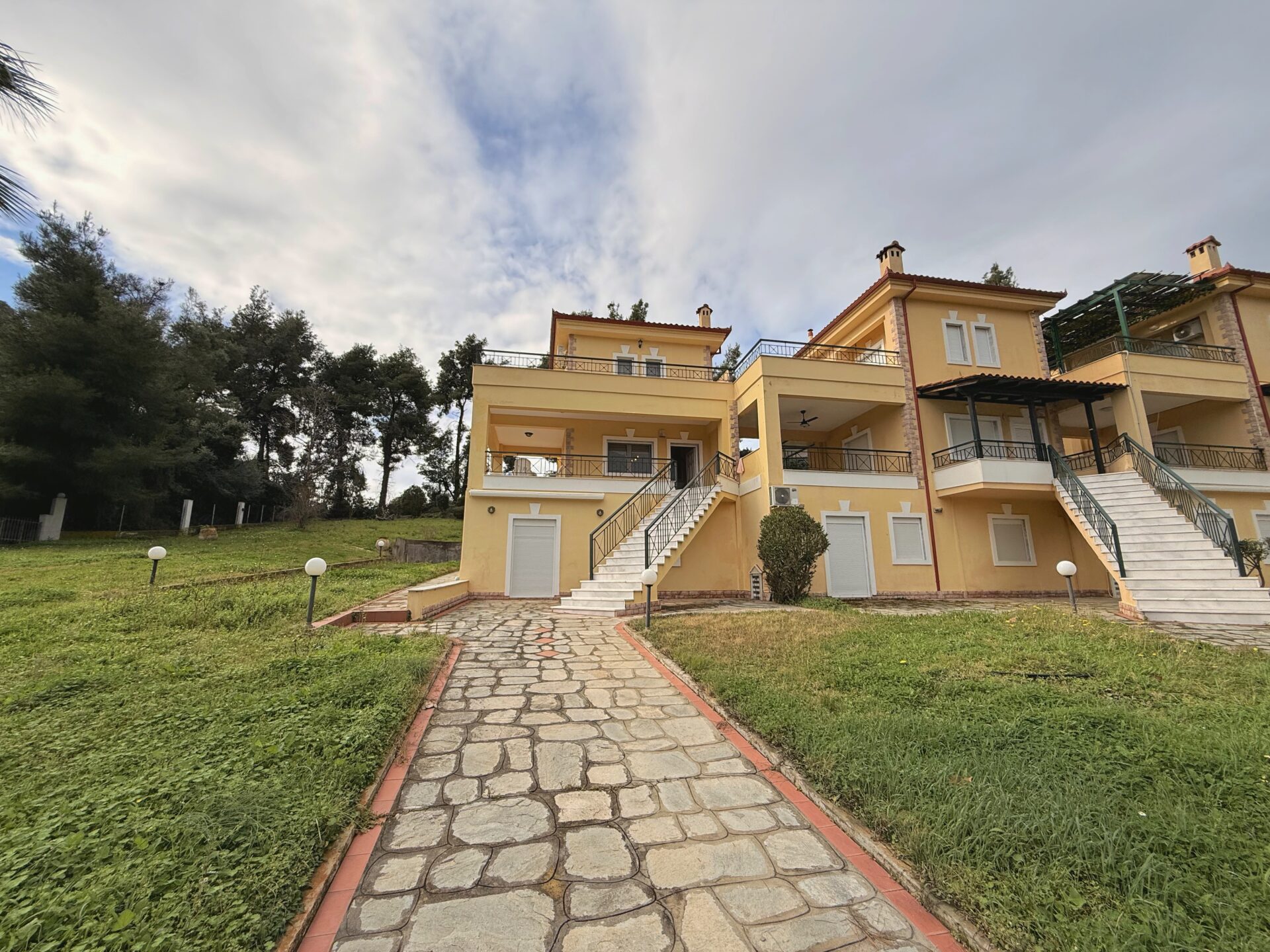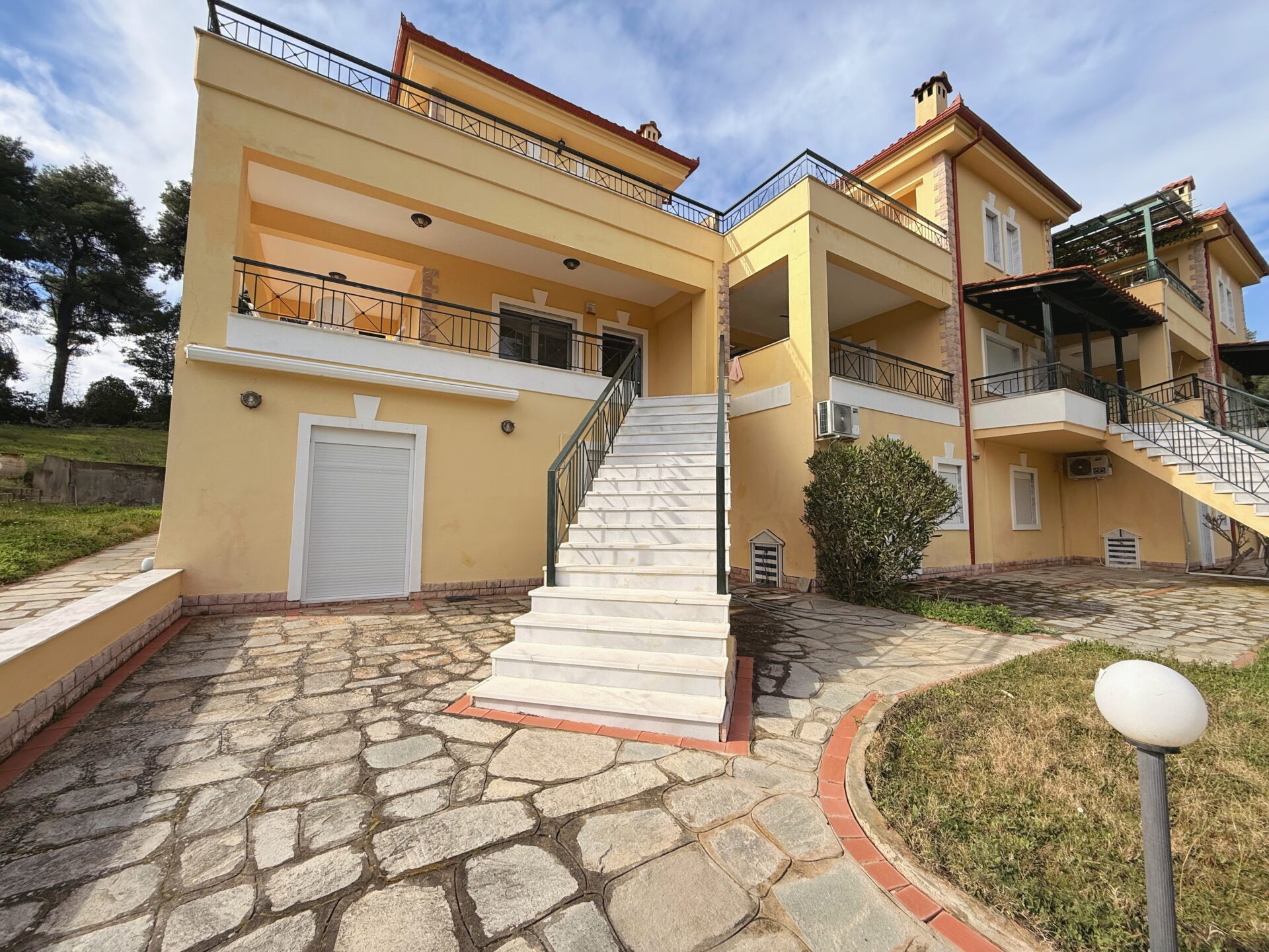 The house is surrounded by a green garden, offering plenty of space for relaxation and play. Around it, you’ll find a comfortable outdoor lounge area, 2 large balconies, ideal for unforgettable evenings with family and friends.