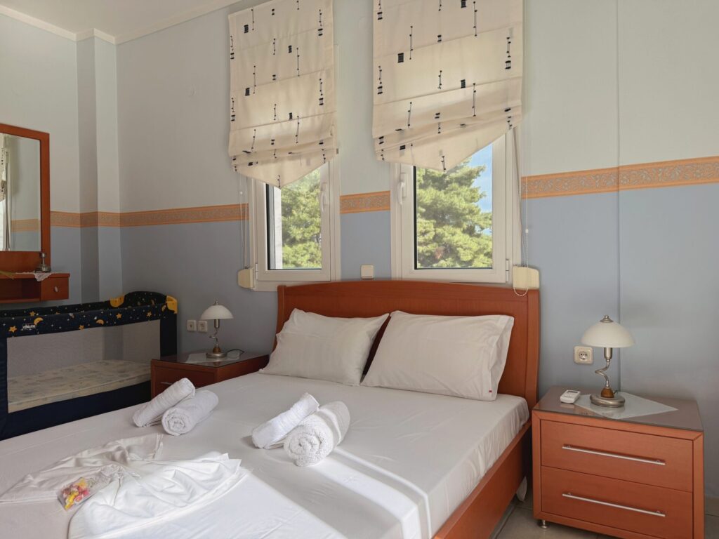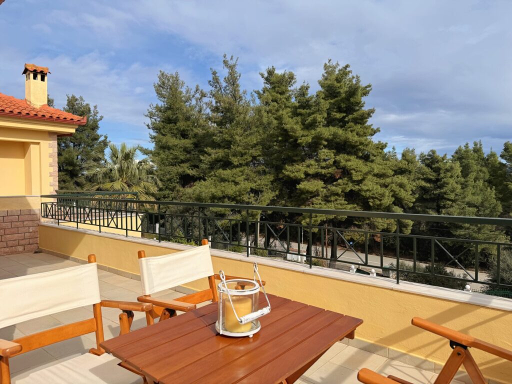 The nearest beach is just 5 minutes by car, offering easy access to the turquoise waters of Halkidiki. The maisonette is located close to restaurants, shops, and local attractions, while still providing peace and privacy away from the crowds.
