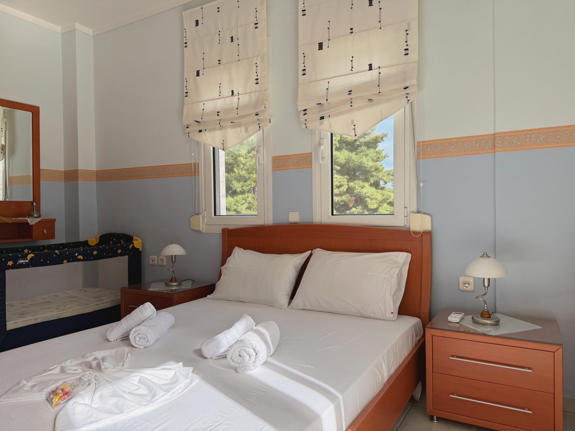 - Υπάρχει A/C σε κάθε δωμάτιο για να εξυπηρετεί στις ζεστές μέρες του καλοκαιριού.