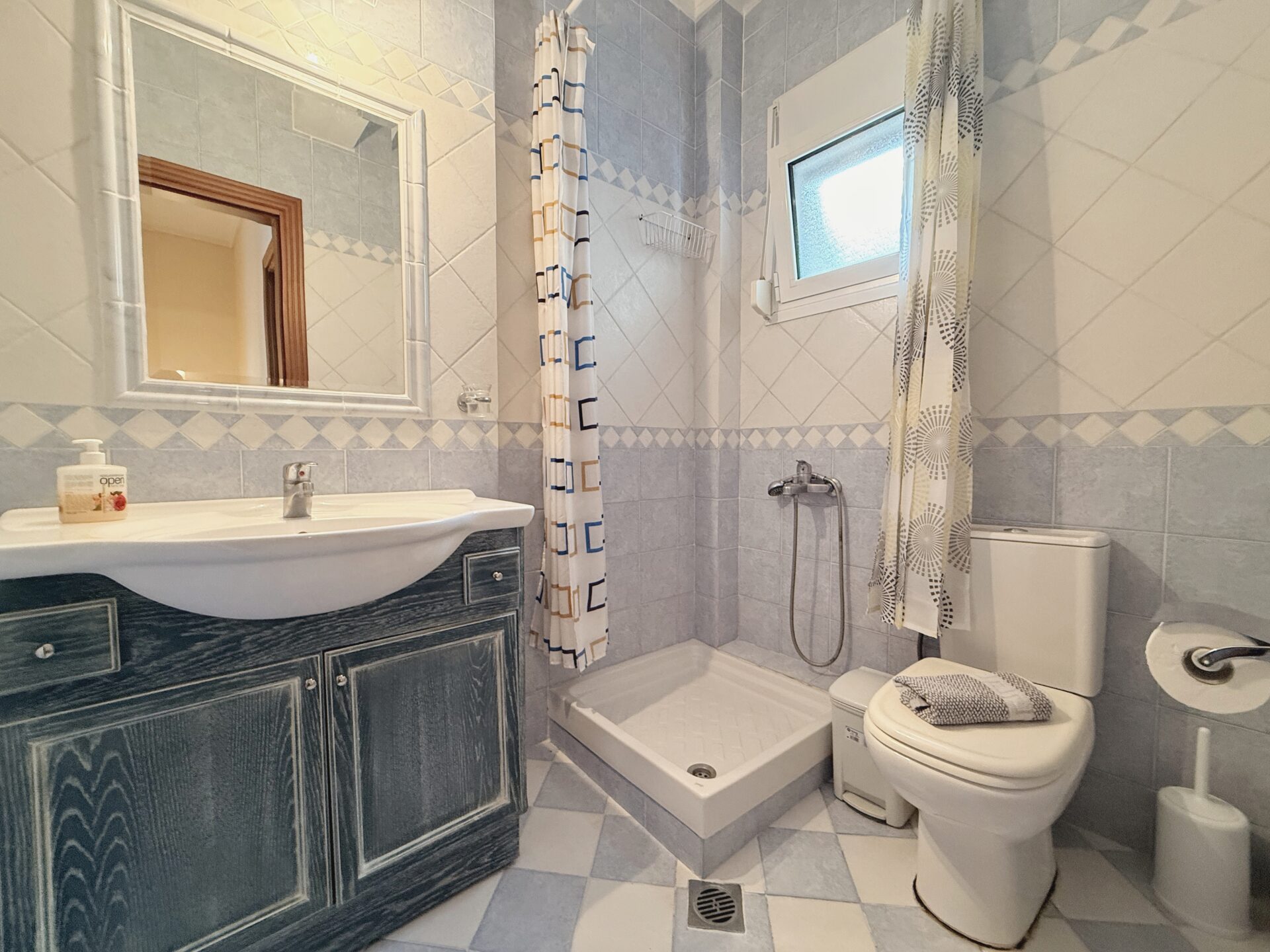 Και στους δύο ορόφους, υπάρχει μπάνιο με ντουζιέρα.