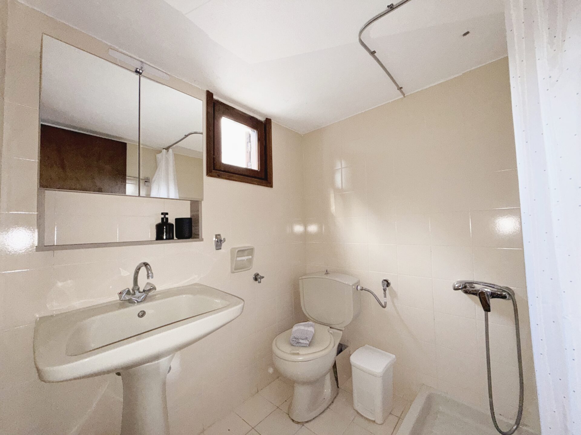 This is a 25 sq.m. studio located on the ground floor of the building and can comfortably accommodate up to 3 guests. Upon entering the residence, you will find a bright open-plan living room and kitchen. The fully equipped kitchen with dining area provides everything you need to prepare meals, from breakfast to dinner, in a welcoming space that brings the family together. In the living area there is a comfortable sofa that converts into a single bed. The apartment features 1 bedroom with a double bed and a bathroom with a shower.
